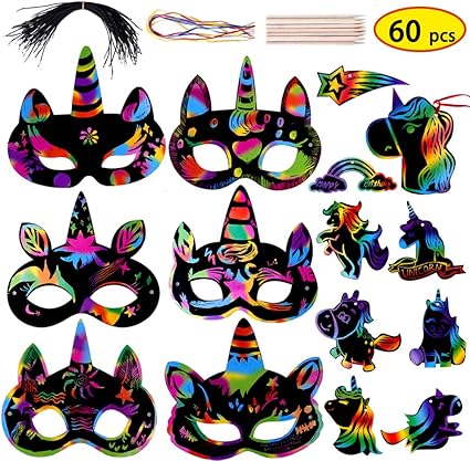 Mallmall6 60pcs Unicorn Scratch Art Party Favors Rainbow Unicorn