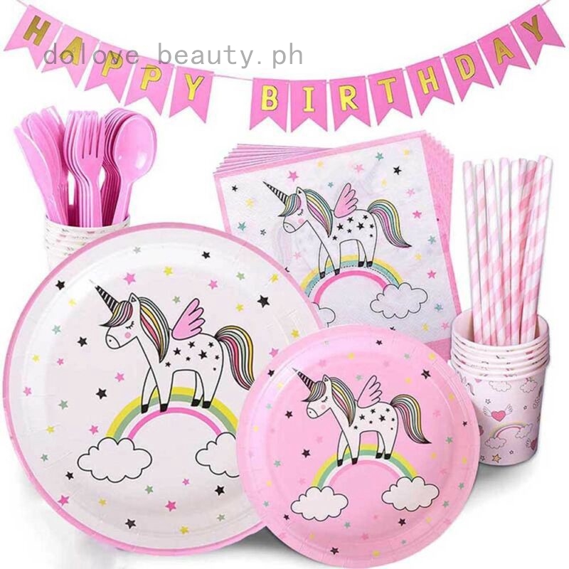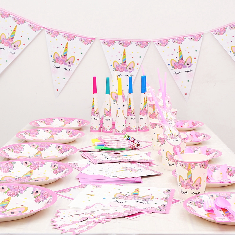 Buy 1 Set Disposable Tableware Unicorn Kids Birthday Party
