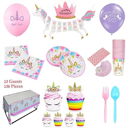 Unicorn Kids Birthday Party Supplies Banner Balloon Tableware Sets