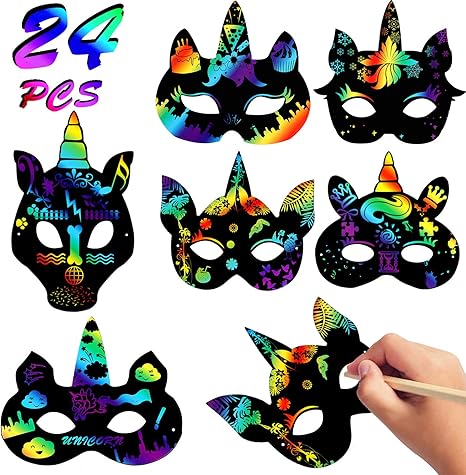 24 Sets Magic Scratch Art Diy Masks Rainbow Scratch Paper Unicorn