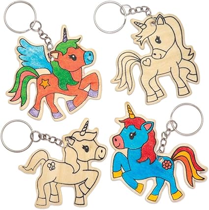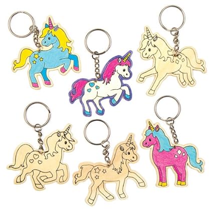 Pack Of 6 Baker Ross Unicorn Wooden Keyrings For Children To Color