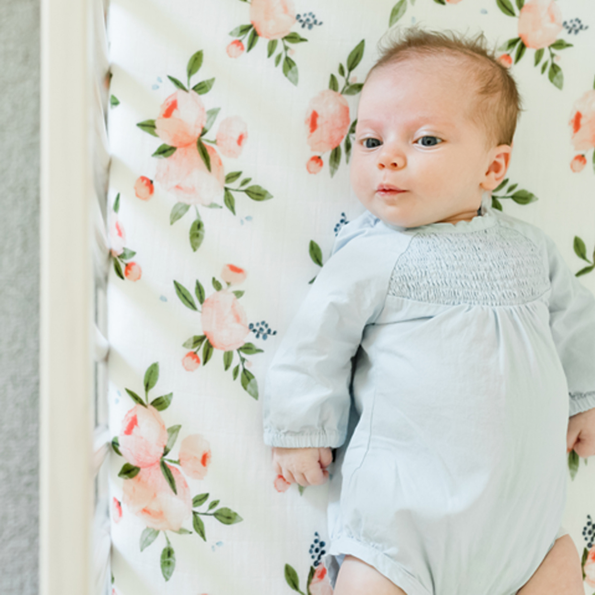Little Unicorn Cotton Muslin Crib Sheet Pink Peony Crib Sheet