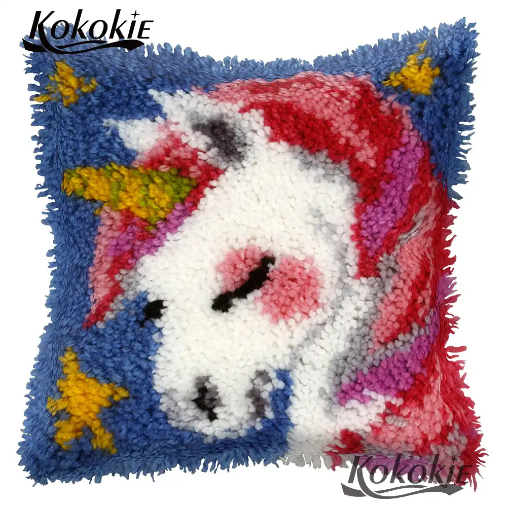 Crocheting Rug Canvas Latch Hook Cartoon Cushion Unicorn Diy