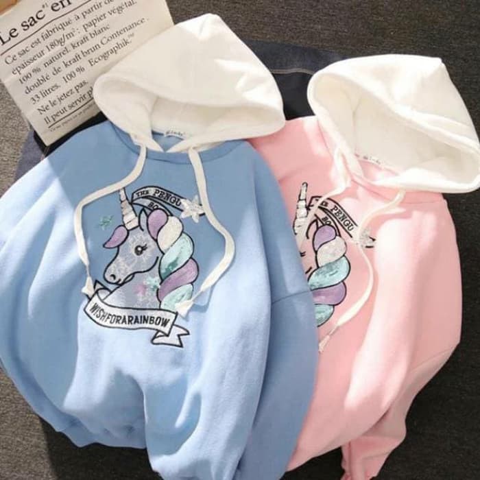 Kpop Harajuku Kawaii Unicorn Printing Long Sleeves Hoodies