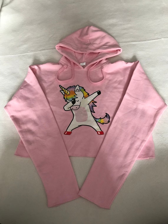 Dabbing Unicorn Cropped Hoodie Tee Hoodie Rainbow Etsy