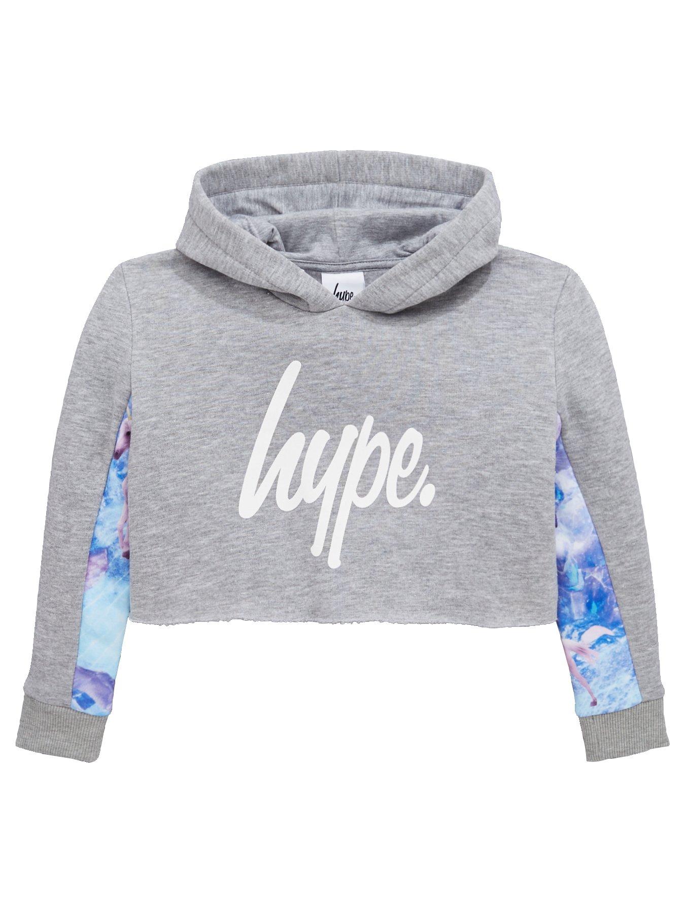 Hype Girls Unicorn Panel Cropped Hoodie Grey Marl