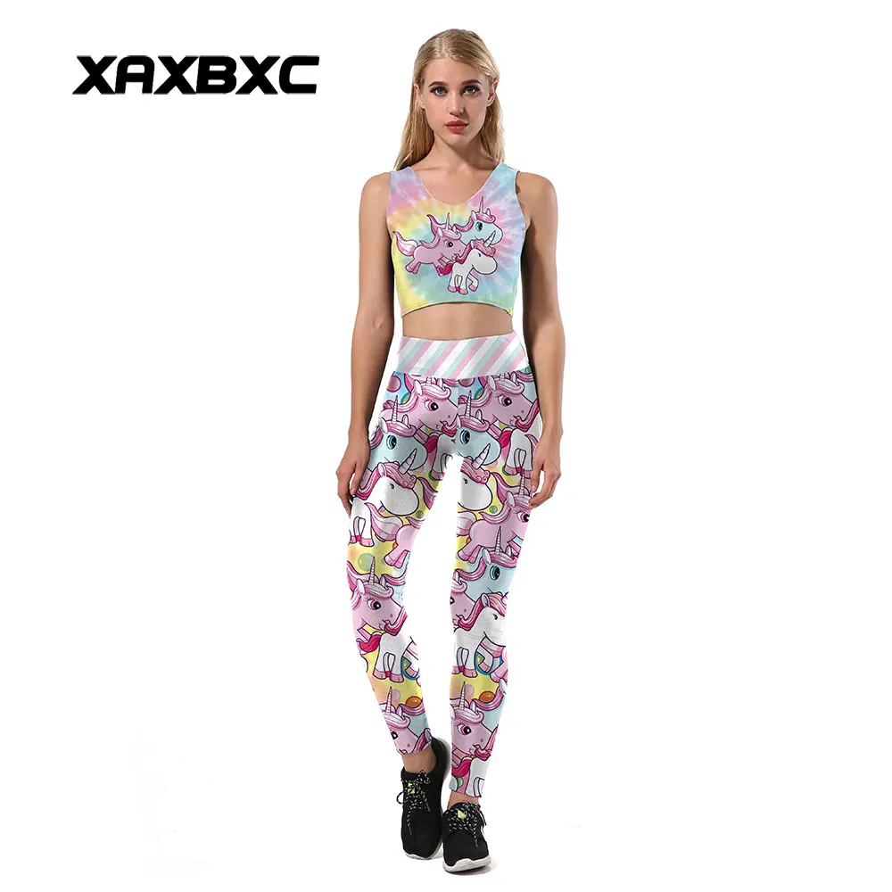 Unicorn Print Two Piece Crop Top And Leggings Set Fancyfabio