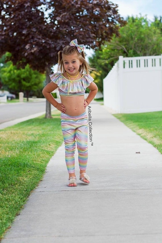 Unicorn Leggings Girls Pants And Ruffle Crop Top Birthday Etsy