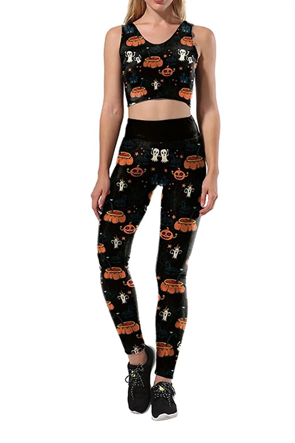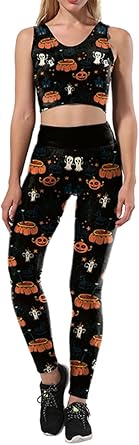 Halloween Unicorn Printed Crop Top Skinny Leggings Sports Suit