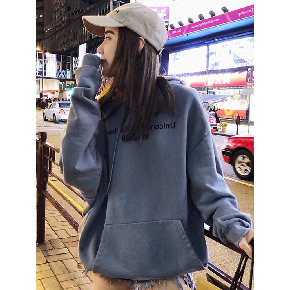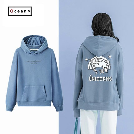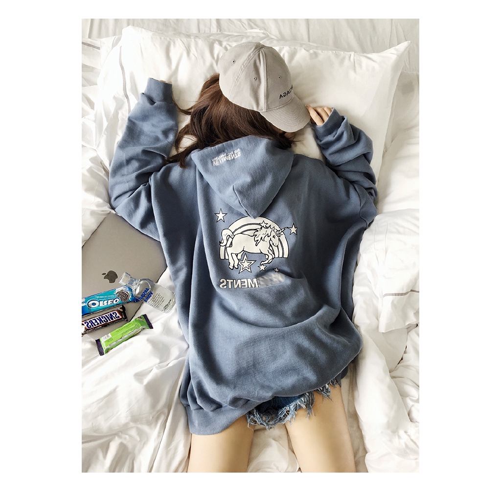 Oce Korean Women S Thick Hoodie Long Sleeved Loose Unicorn Print