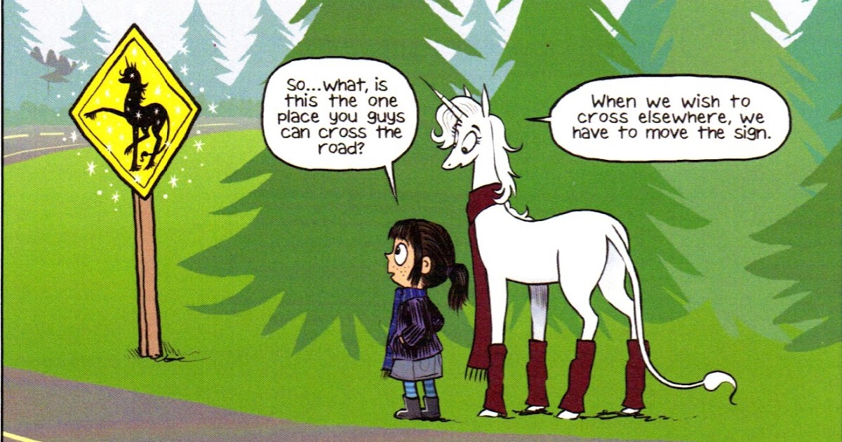 Unicorn crossing is the fifth book in the phoebe and her unicorn adventure series by dana simpson. 176 pages 9 x 6 x 05 in published. Although the journey of growing up can sometimes be difficult along the way phoebe and marigold discover something more enduring than goblin fads unicorn spa vacations and even a. Phoebe and her unicorn is the bestselling series from author and illustrator dana simpson.
