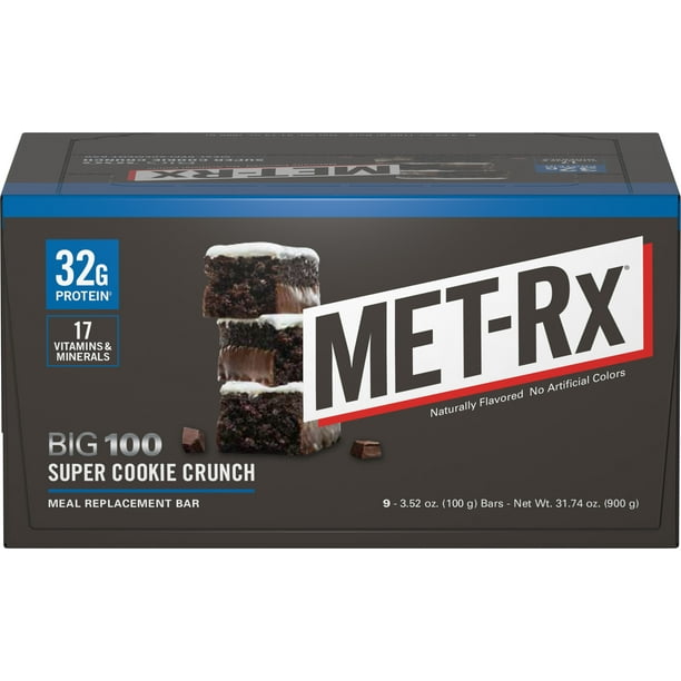 Met Rx Big 100 Protein Bar Super Cookie Crunch 32g Protein 9 Ct