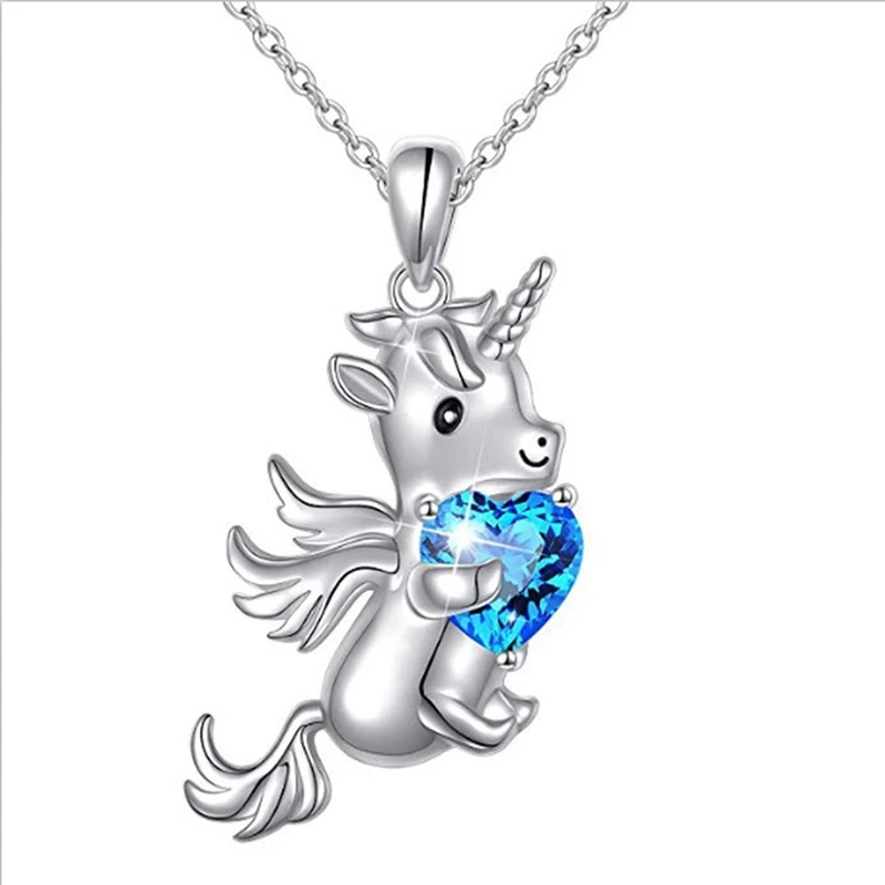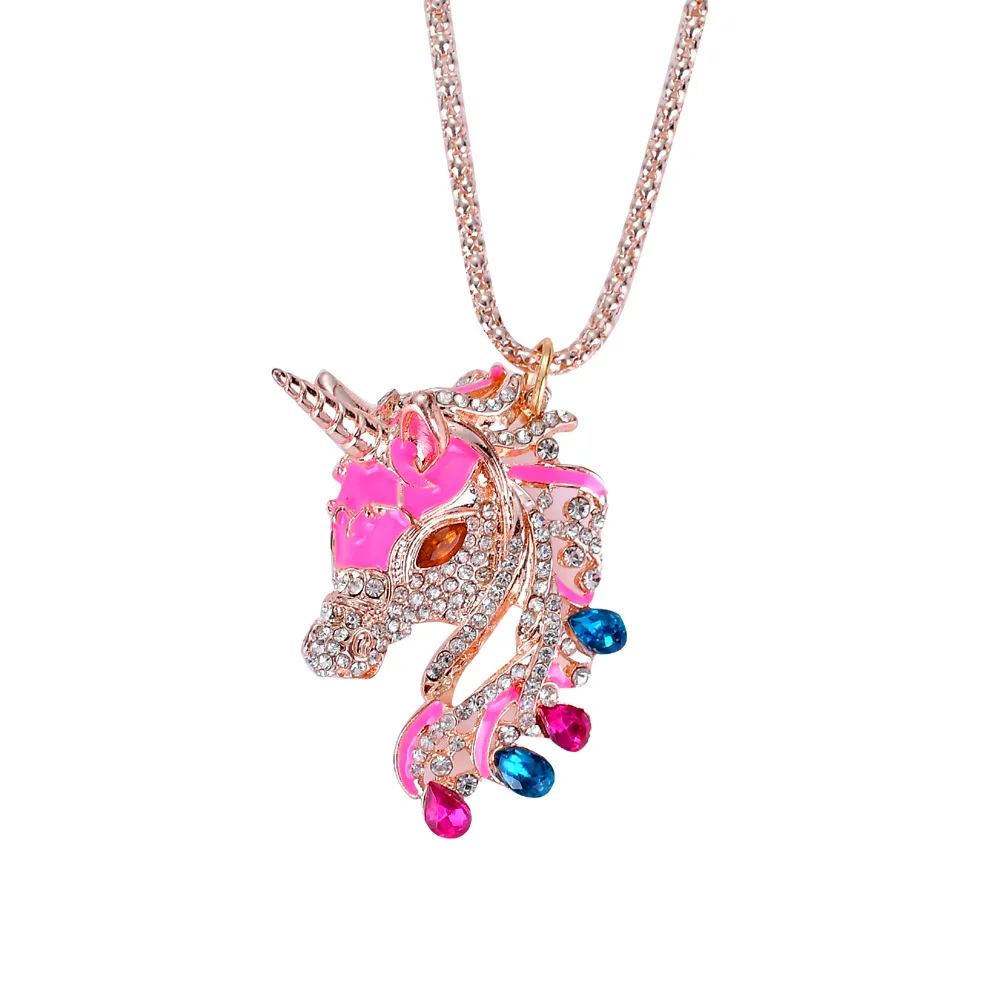 Women Ladies Necklace Crystal Animal Unicorn Horse Necklace Girls