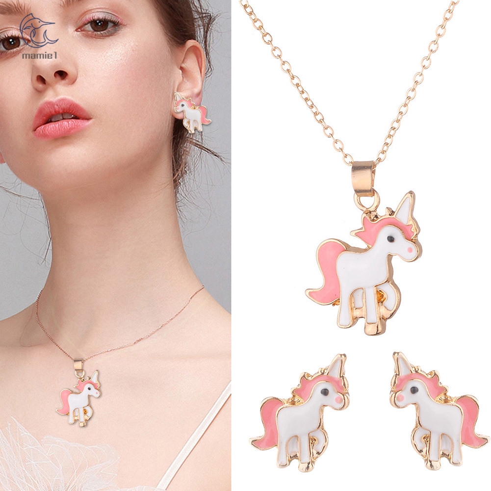 Jual Girls Unicorn Necklace Cute Cartoon Pendant Crystal Glass