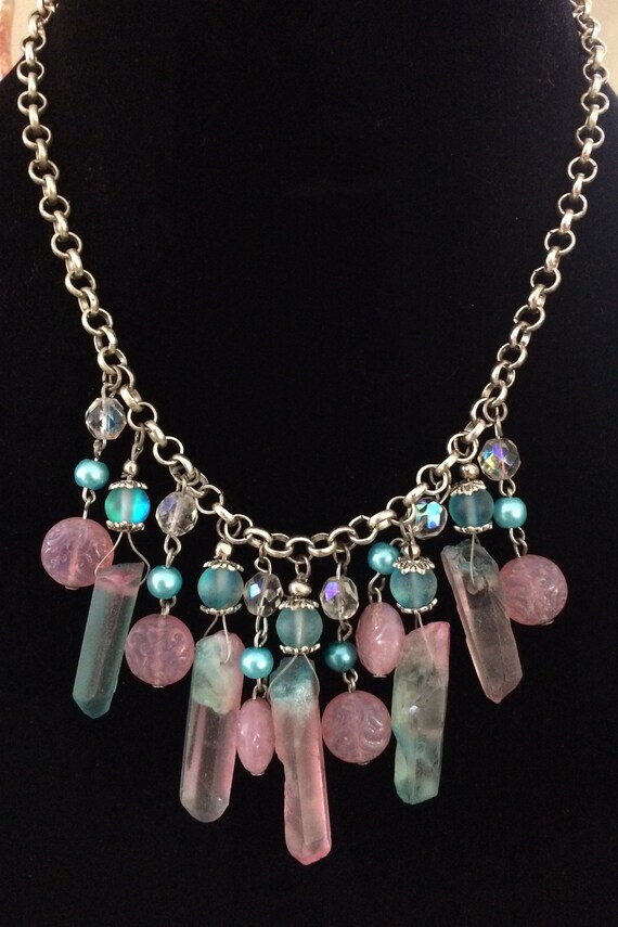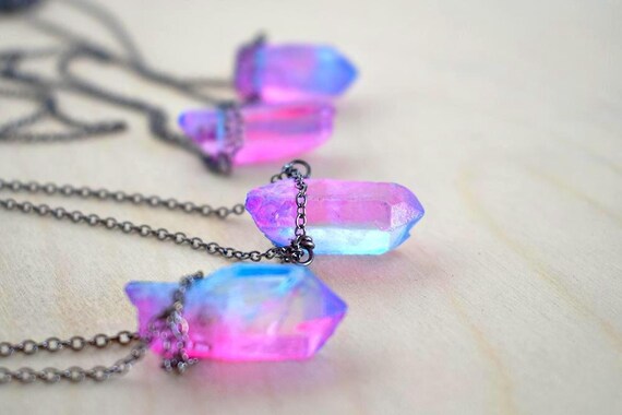 Unicorn Crystal Necklace Pink And Blue Crystal Necklace Etsy