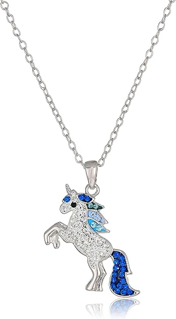 Amazon Com Silver Plated Crystal Blue Unicorn Pendant Necklace