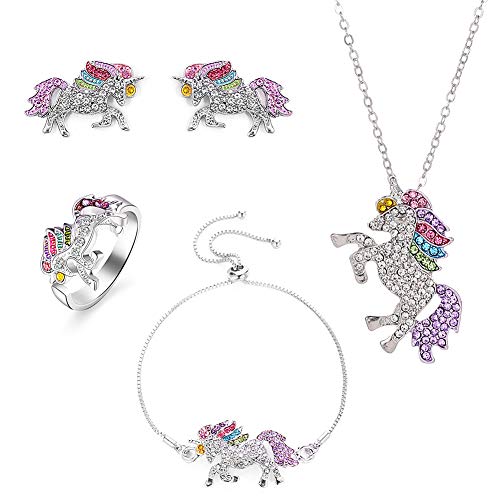 2020 3 Pack Unicorn Jewelry Set Include Rainbow Rhinestone