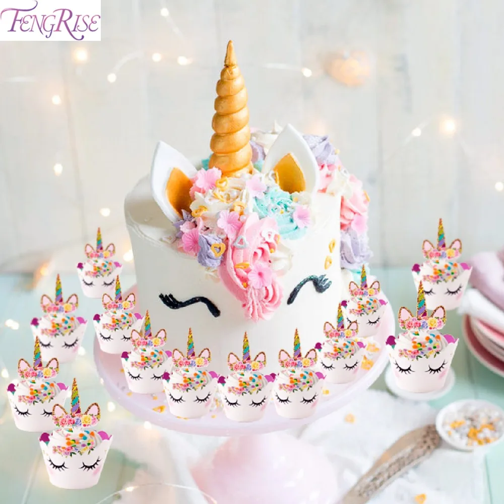 Fengrise Cute Rainbow Unicorn Cupcake Cake Wrappers Toppers Banner