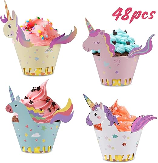 48ct Unicorn Cupcake Toppers Wrappers Birthday Party Cake