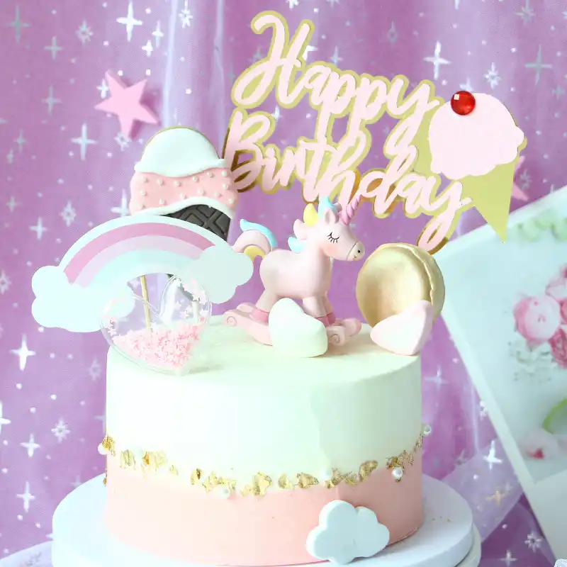Ready Stock 3d Unicorn Happy Birthday Cake Topper Decoration