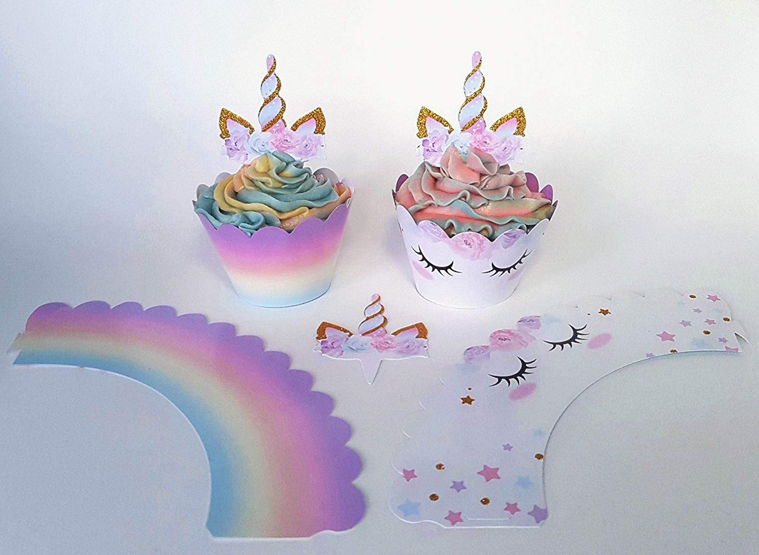 Amazon Com Fzr Legend Unique Design 24 Sets Cute Unicorn Cupcake Toppers And Wrappers 4 Styles Double Side With Eyelashes Horn Ears And Rainbow Unicorn Party Supplies For Girls Boys Birthday Party Home Kitchen