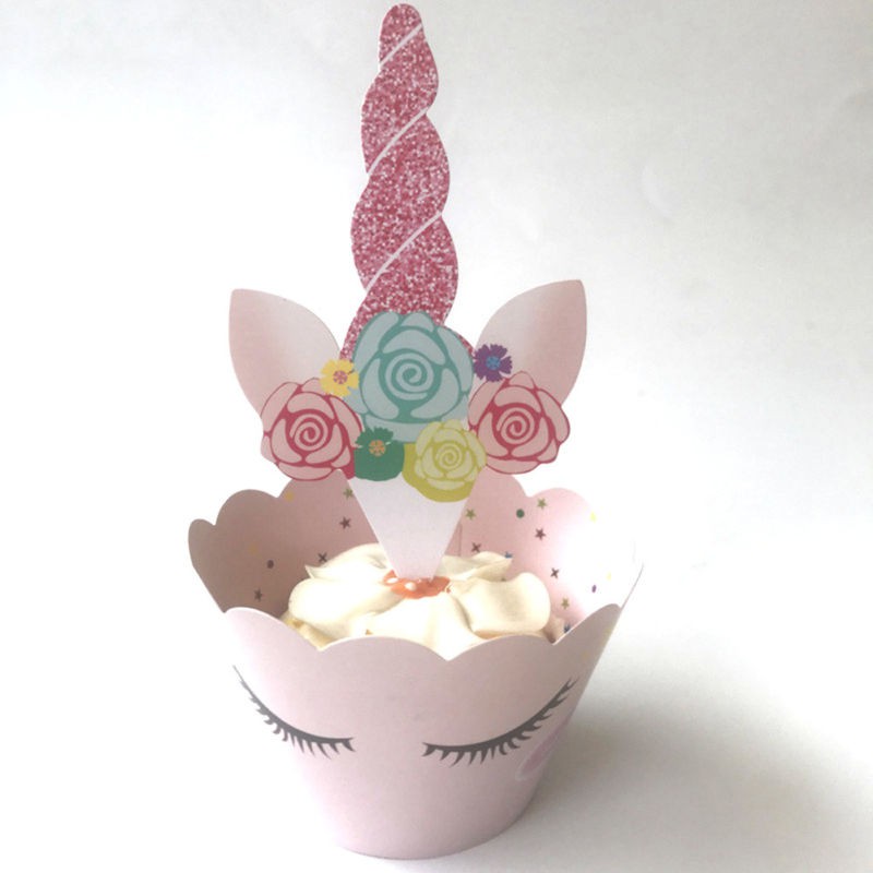 12pcs Unicorn Cupcake Cake Toppers Wrappers Baking Liners Wedding