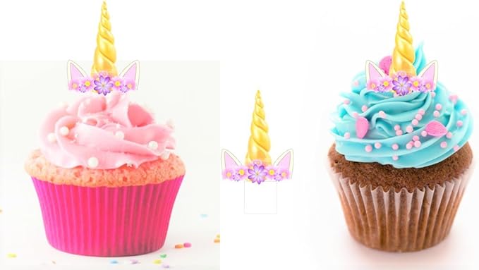 24 Stand Up Mini Unicorn Rainbow Horn Ears Edible Cupcake Cake