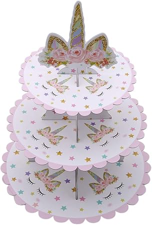 Lalang 3 Tier Unicorn Cardboard Cupcake Stand Dessert Cupcake