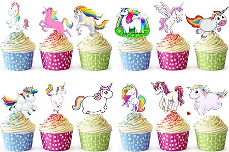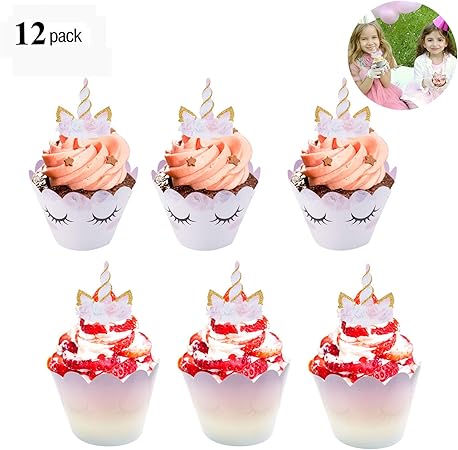 Poluka 12pcs Unicorn Cupcake Toppers And Wrappers 1 Set 3 Tier