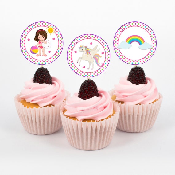 Unicorn Pool Party Cupcake Toppers Unicorn Party Swimming Party