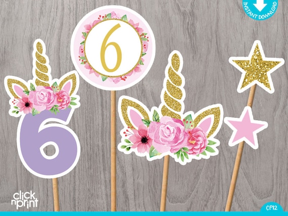 Unicorn 6th Birthday Centerpieces Print Yourself Printable