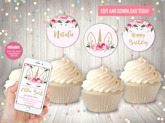 Unicorn Party Printable Birthday Labels Unicorn Cupcake Toppers