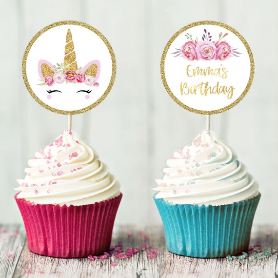 Unicorn Cupcake Toppers Girls Birthday Party Gold Glitter Etsy