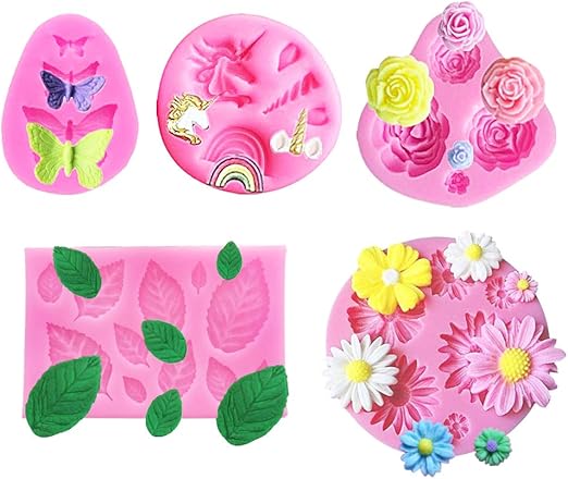 Set Of 5 Mini Unicorn Mold Unicorn Ears Horn Rainbow Flowers And