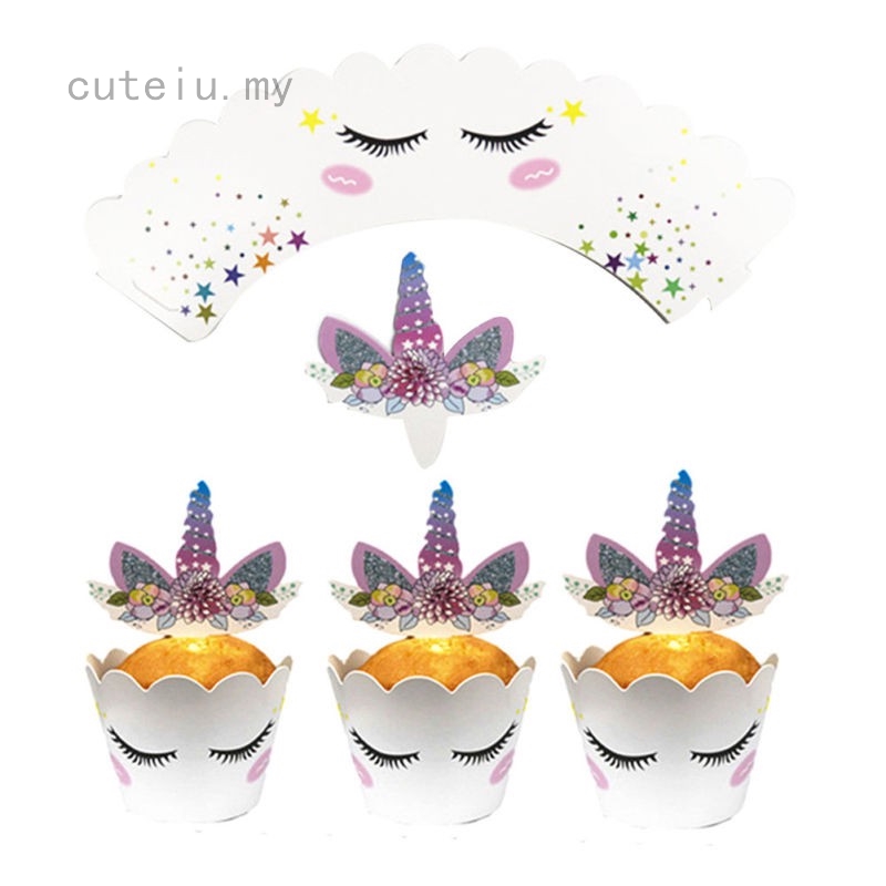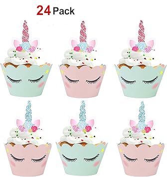 24 Pcs Unicorn Cupcake Topper Party Decoration Wrapper Cake Diy