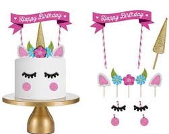 Hot Unicorn Happy Birthday Cake Topper Banner Decorating Party