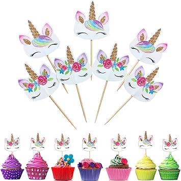 24 X Unicorn Cake Picks Cupcake Toppers Birthday Decorations