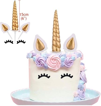 Unicorn Cake Topper Gold Pack Of 6 Unicorn Horn Ears And Eyelash