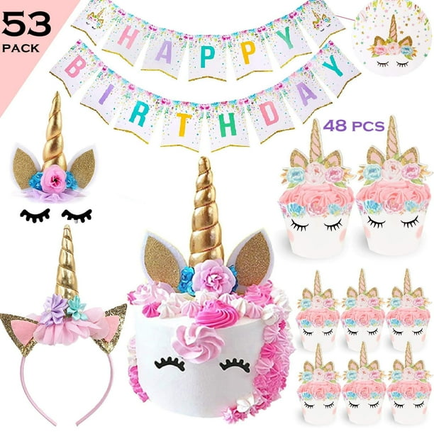 Unicorn Cupcake Toppers Wrappers Birthday Party Supplies