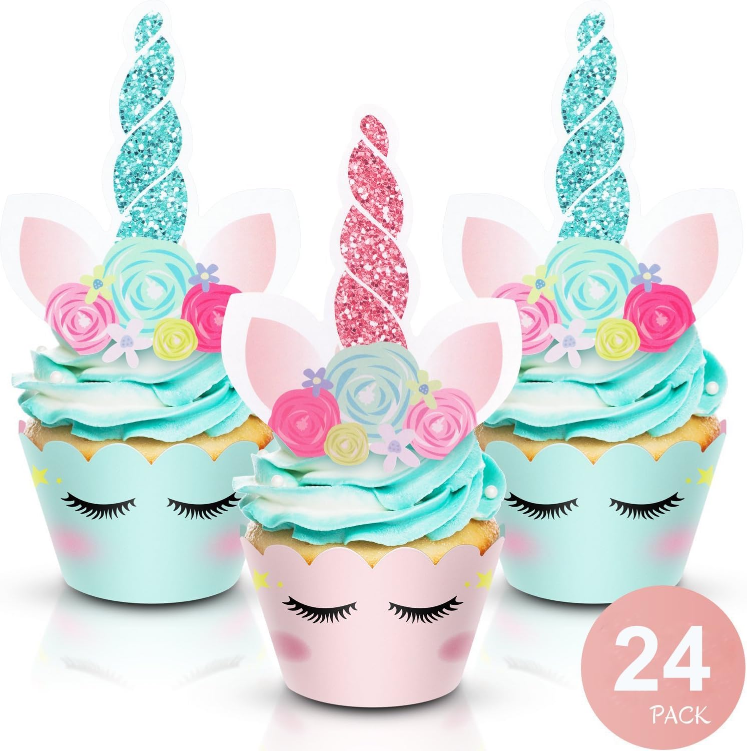 Unicorn Cupcake Toppers And Wrappers Party Supplies For Birthday