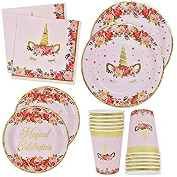 Unicorn Party Supplies 16 Guests Plates Cups Napkins