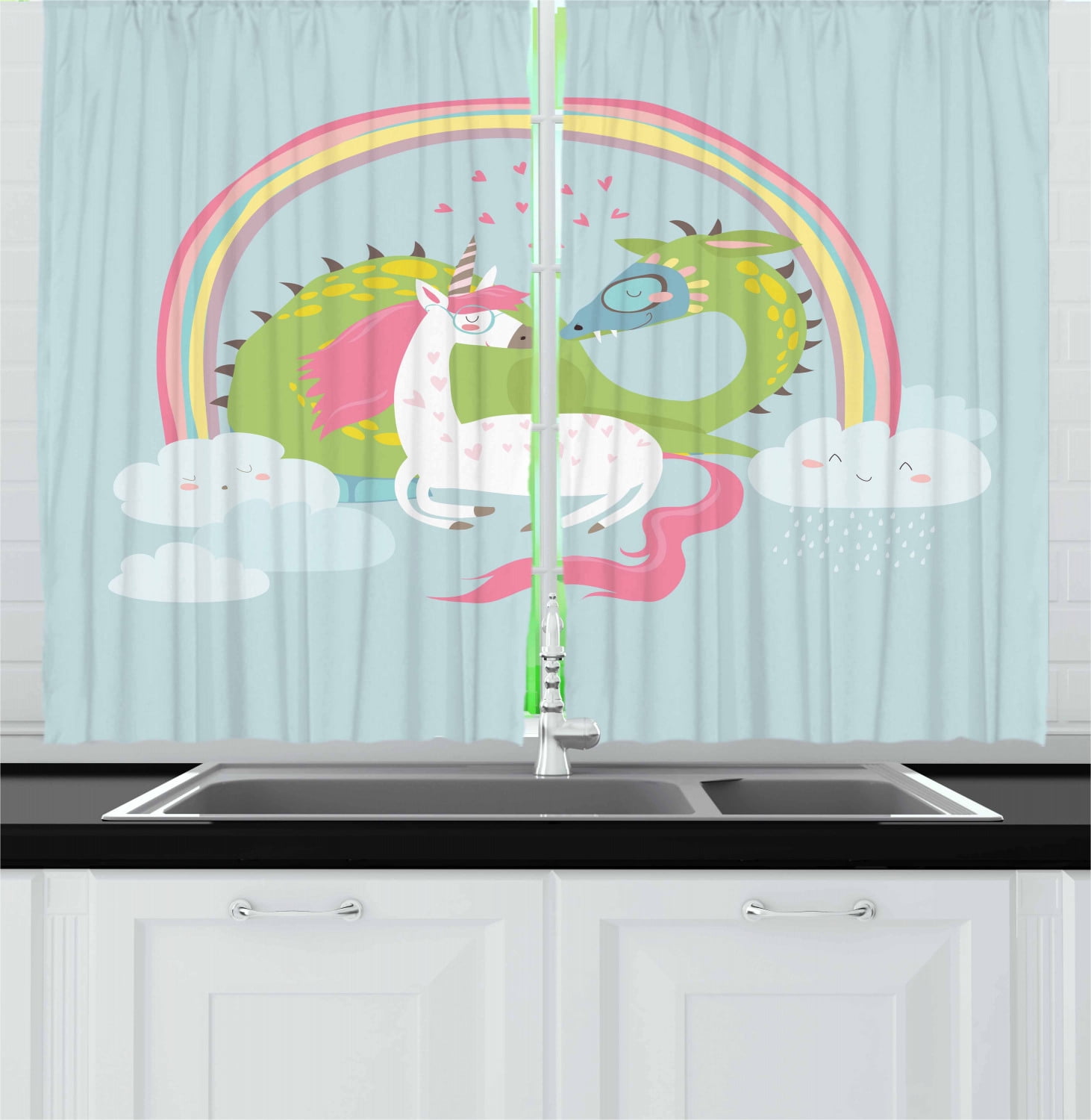 Kids Girls Curtains 2 Panels Set Love Of Dragon And Unicorn Couple Magical Romance Flirting Baby Cartoon Window Drapes For Living Room Bedroom 55w X 39l Inches