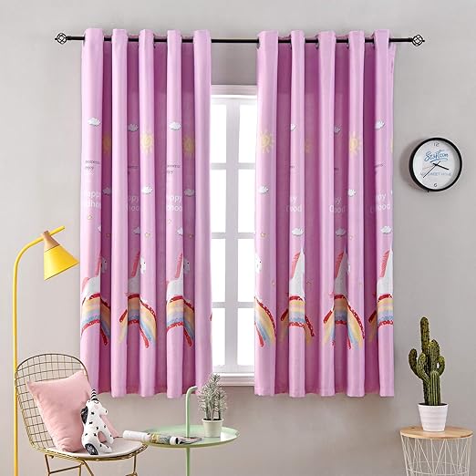 Black Pink Unicorn Curtains For Girls Bedroom Decorative Drapes