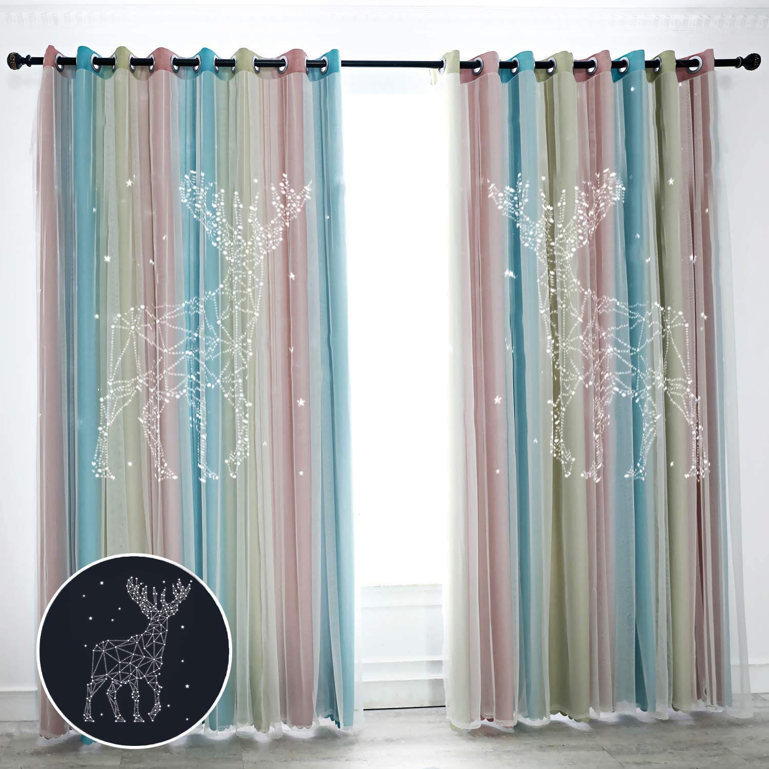 Buy Hughapy Kids Blackout Curtains For Girls Bedroom Rainbow Unicorn Curtains Double Layer Star Cut Out Curtain 1 Panel Pattern 1 Left 52w X 84l Online At Low