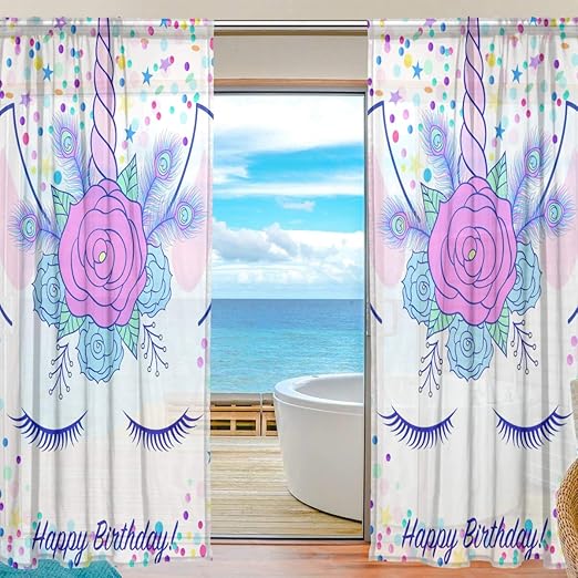 Vantaso Sheer Curtains 78 Inch Long Purple Hair Unicorn For Kids Girls Bedroom Living Room Window Decorative 2 Panels Wantitall