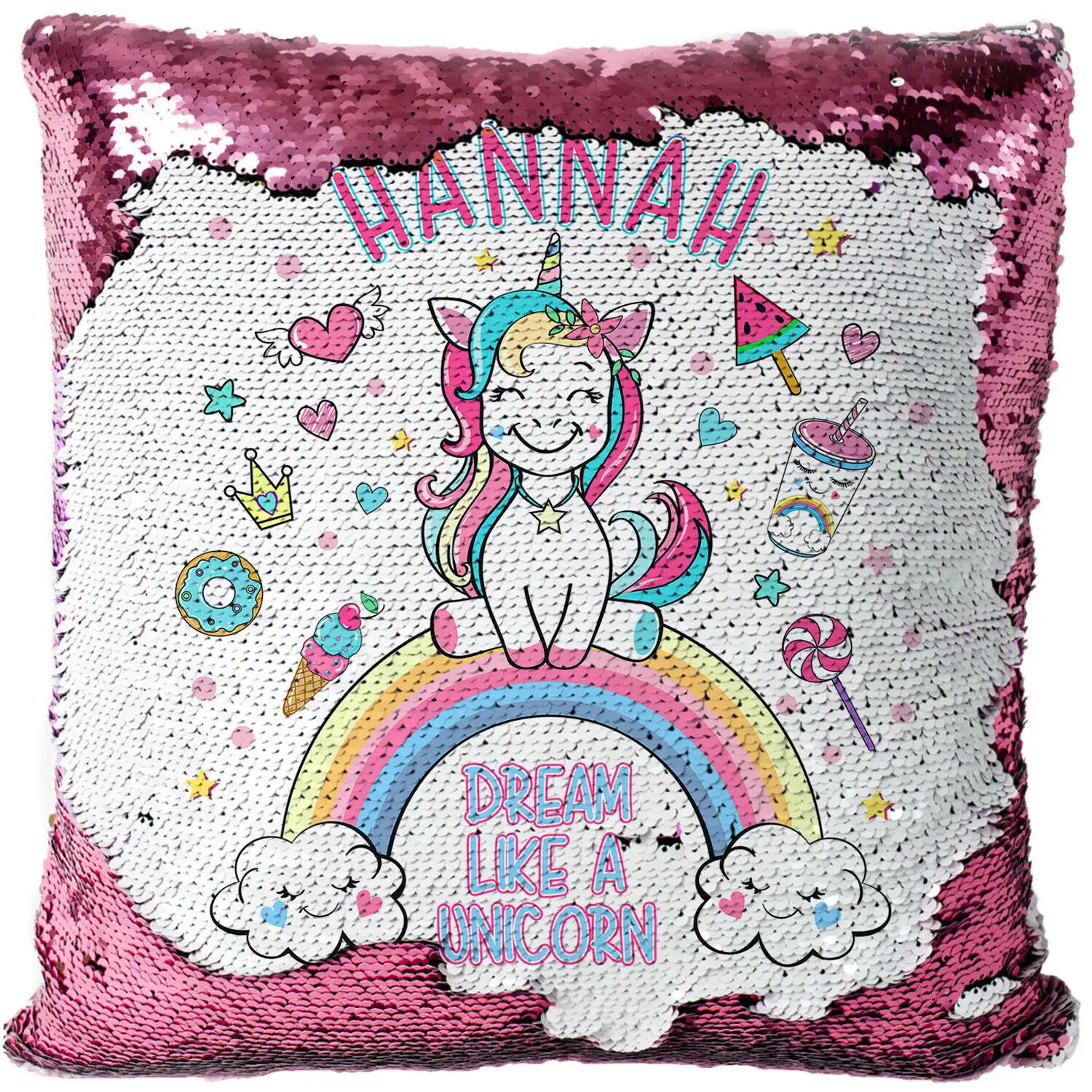 Personalised Rainbow Unicorn Sequin Magic Cushion Personalised
