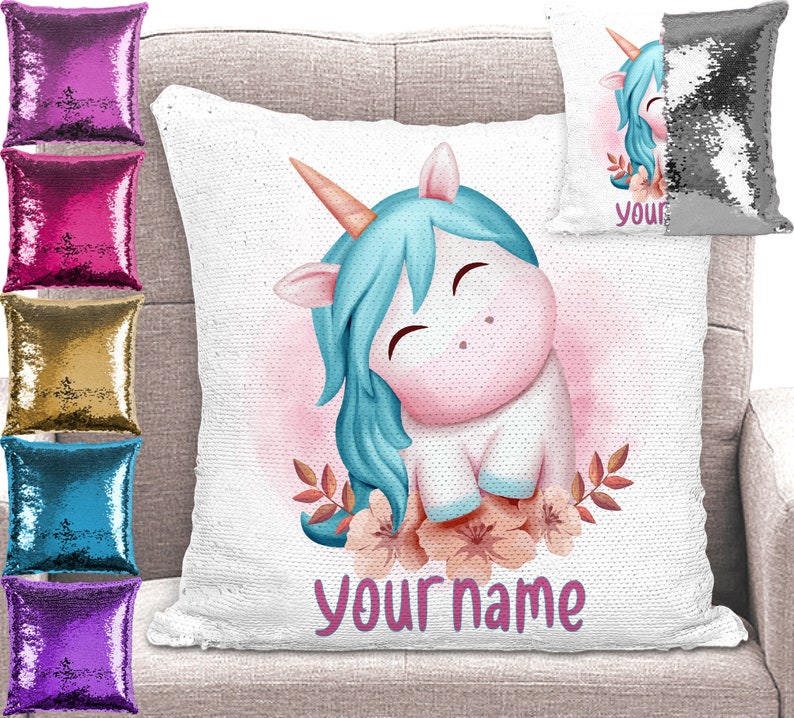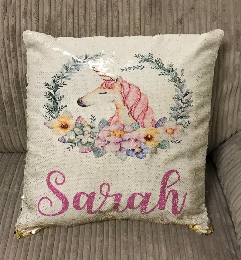 Unicorn Pillow Sequin Cushion Cover Personalised Cushion Etsy