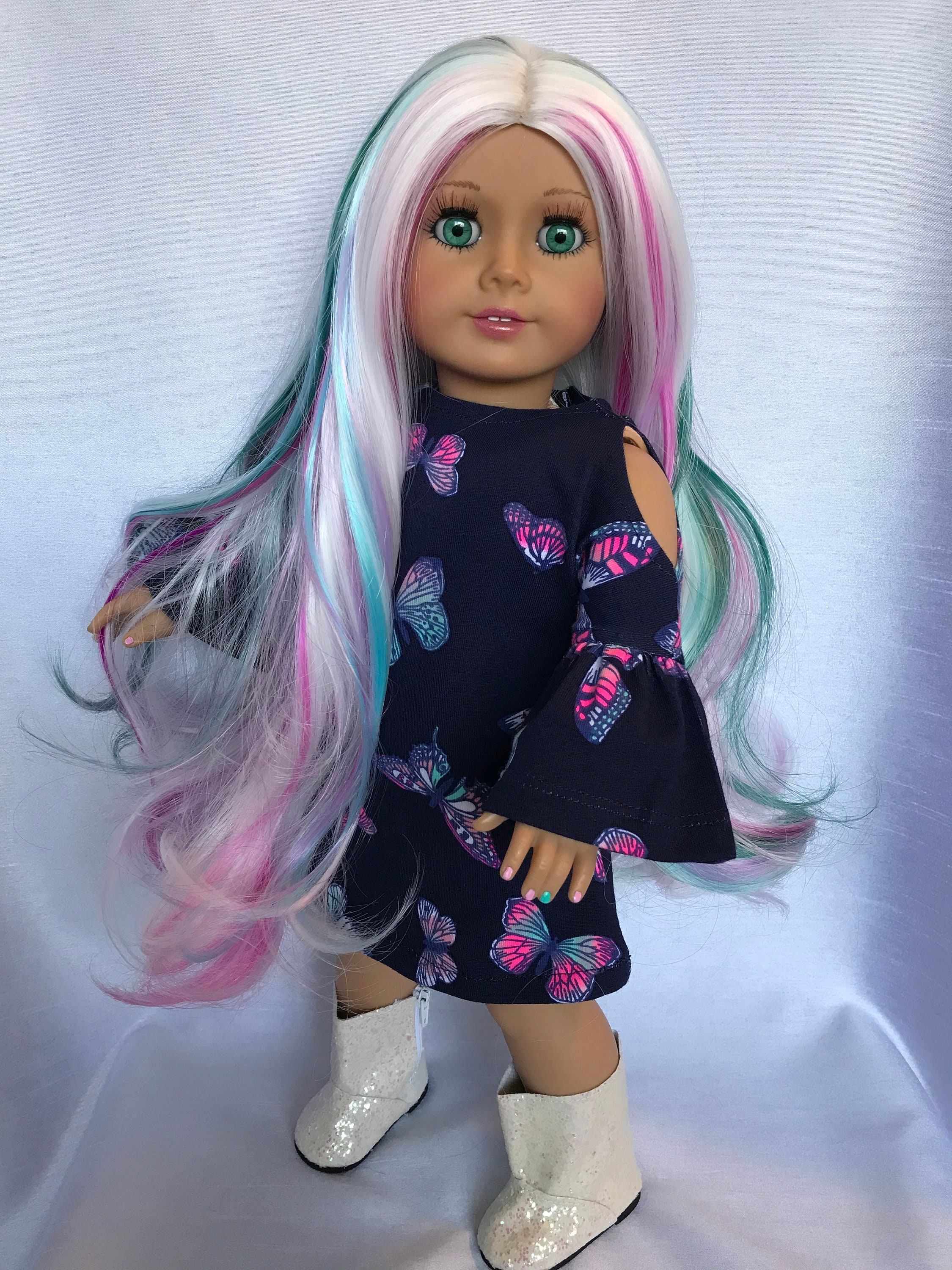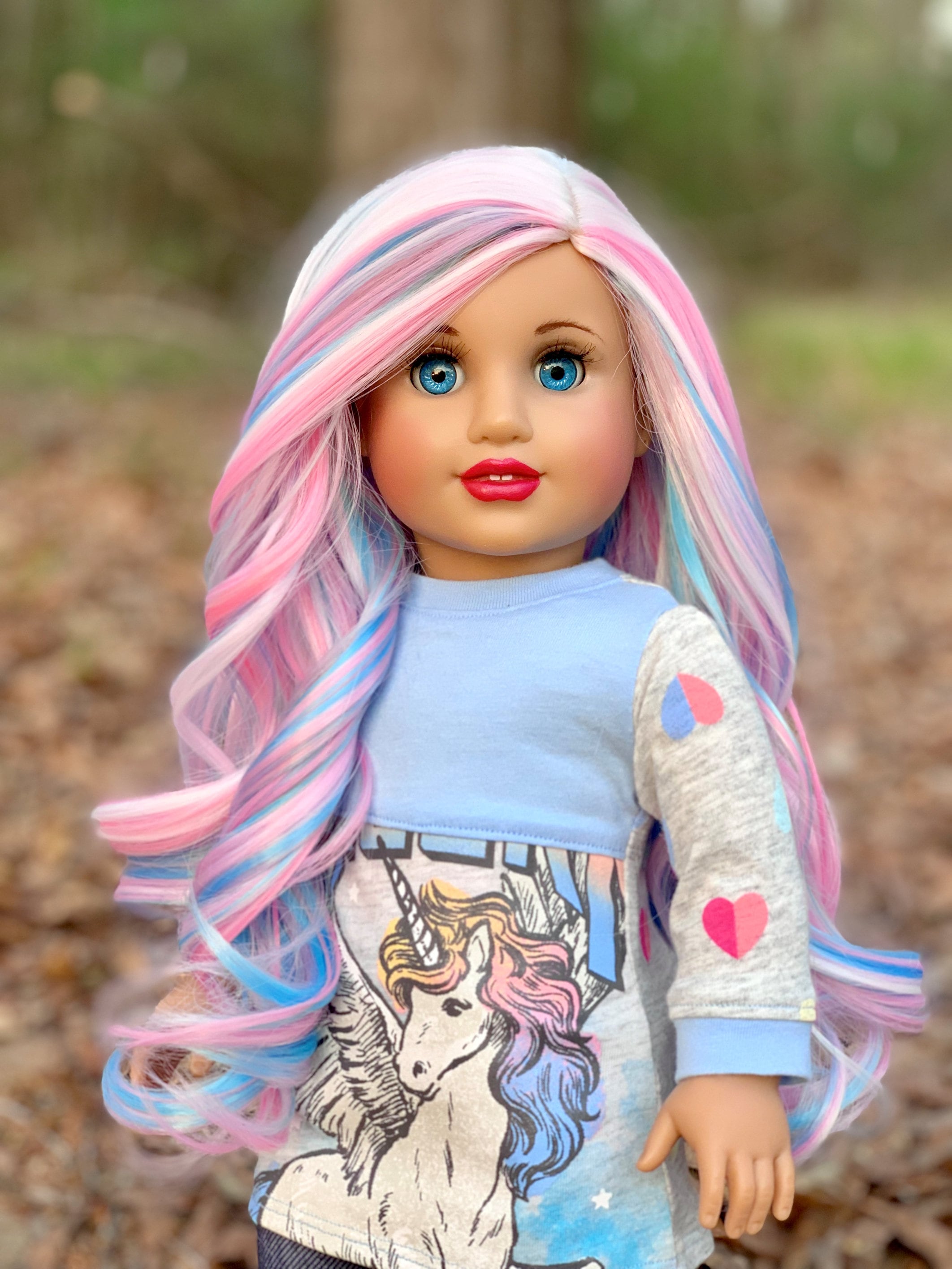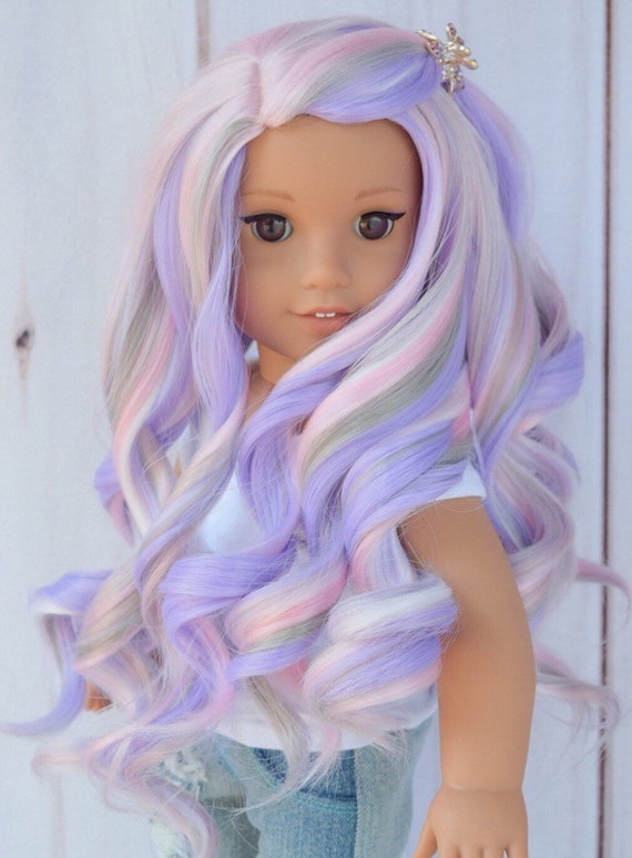 Unicorn Elegance Doll Wig For Custom American Girl Dolls White Pastel Highlights Beautifully Custo Custom American Girl Dolls American Girl American Girl Doll