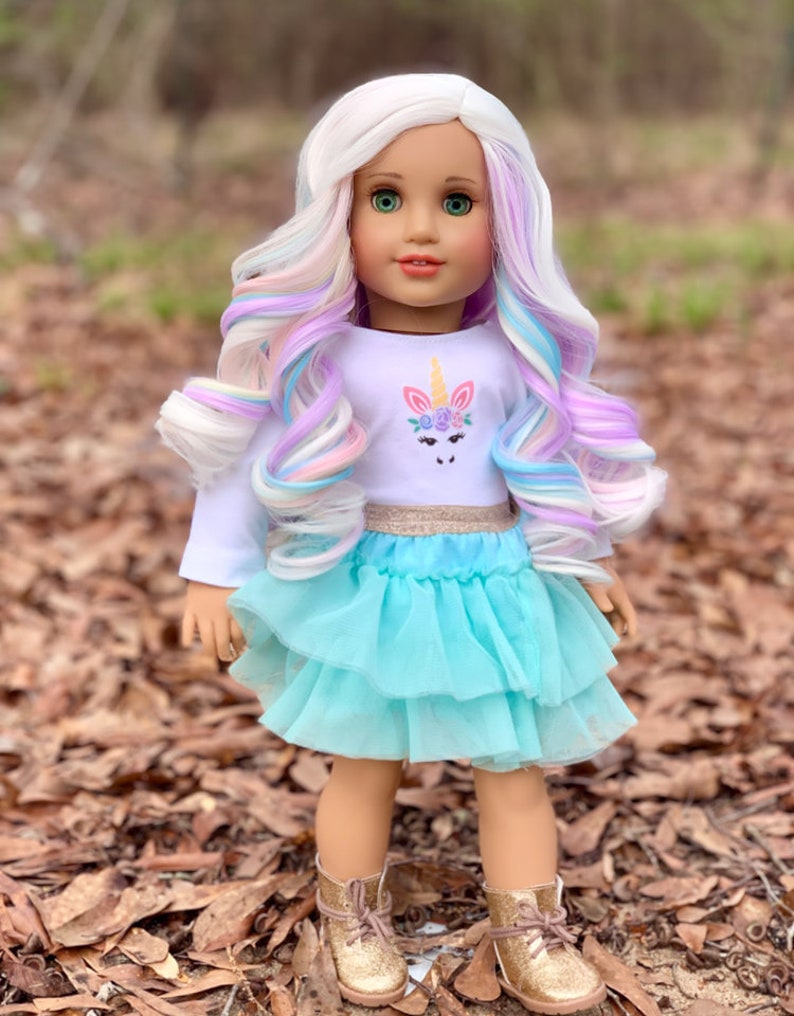 Dolls Bears American Girl Doll Wig Rainbow Unicorn Custom New 18 Doll Any 10 11 Head Dolls Fotoschier Nl