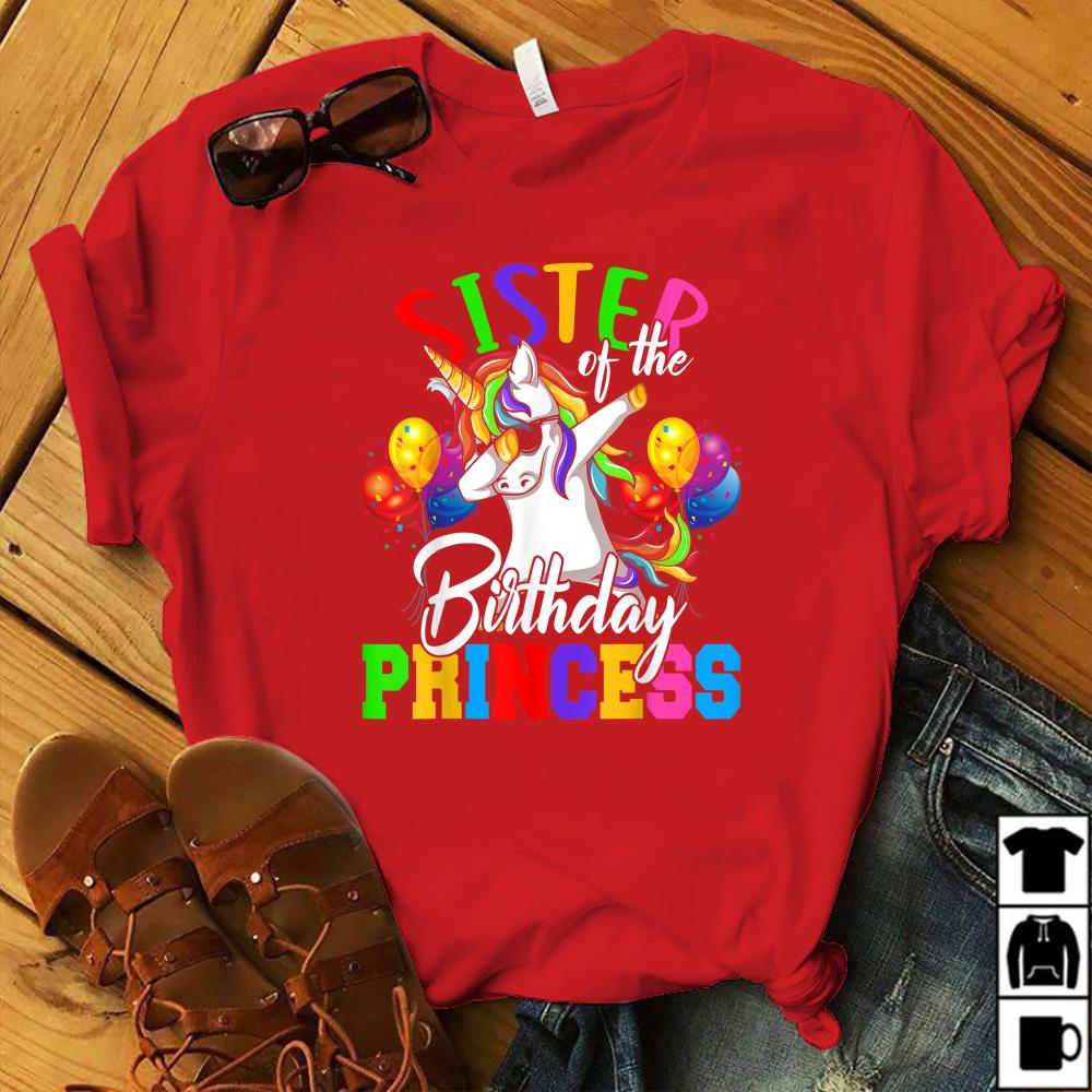 Sister Of The Birthday Princess Dabbing Unicorn Gifts T Shirt Size